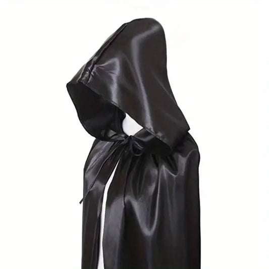 Adult Satin Feel Hooded Cape Black 170cm