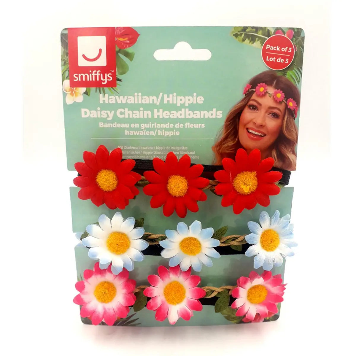Elasticated daisy chain hippie headband with attached daisy flower strands